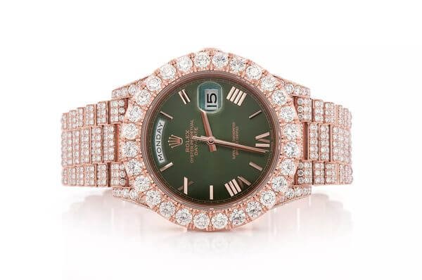 BUST DOWN WATCH ROLEX DAY DATE 40MM GREEN DIAL AUTOMATIC FULL ICED 23.00CT