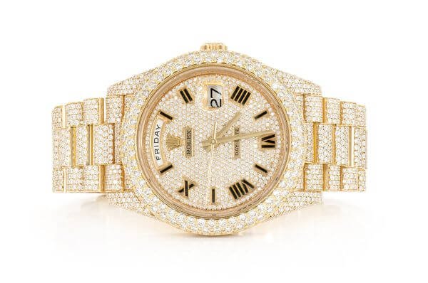 ICED OUT WATCHES ROLEX DAY-DATE 40MM AUTOMATIC YELLOW GOLD MOISSANITE 20.30CT