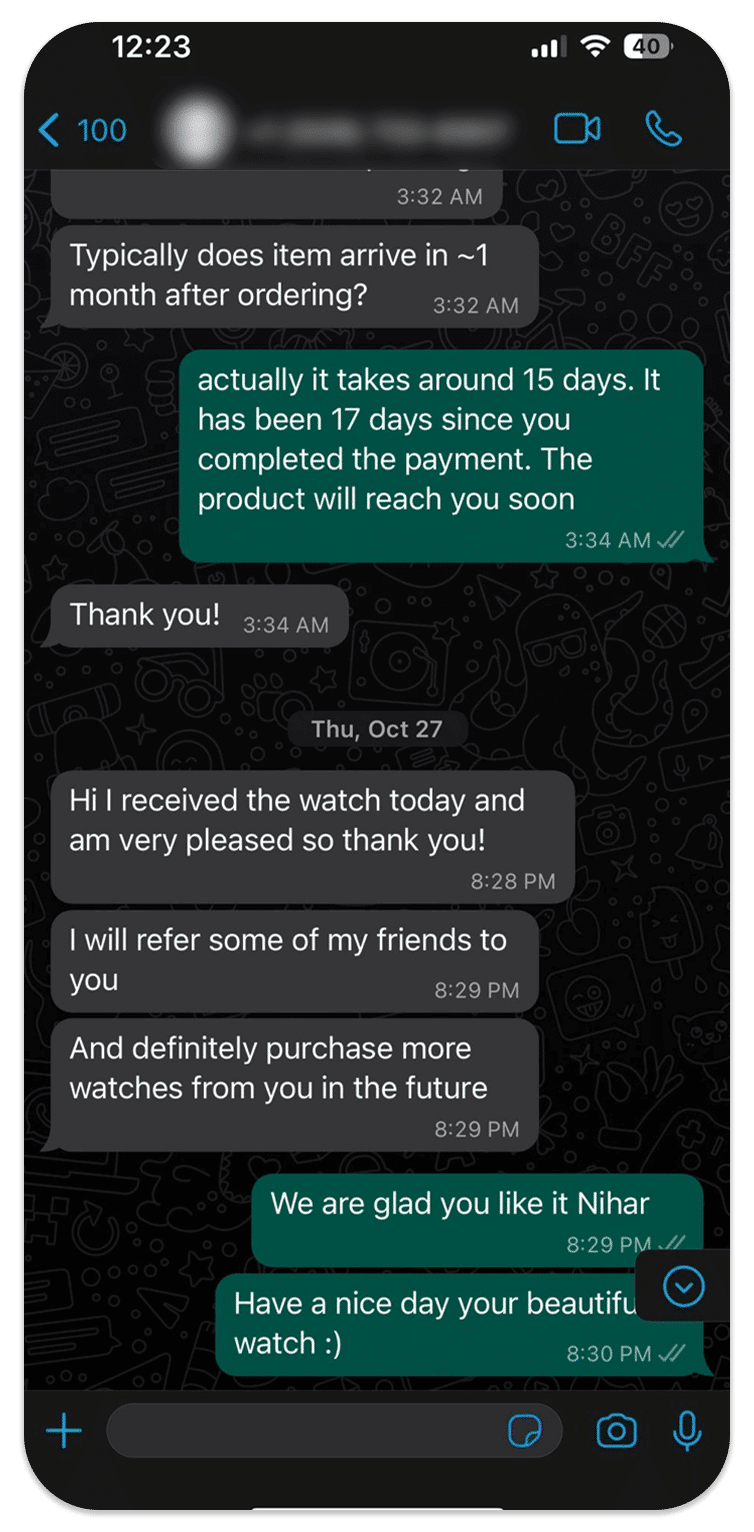 customers who have purchased replica watches and found our service