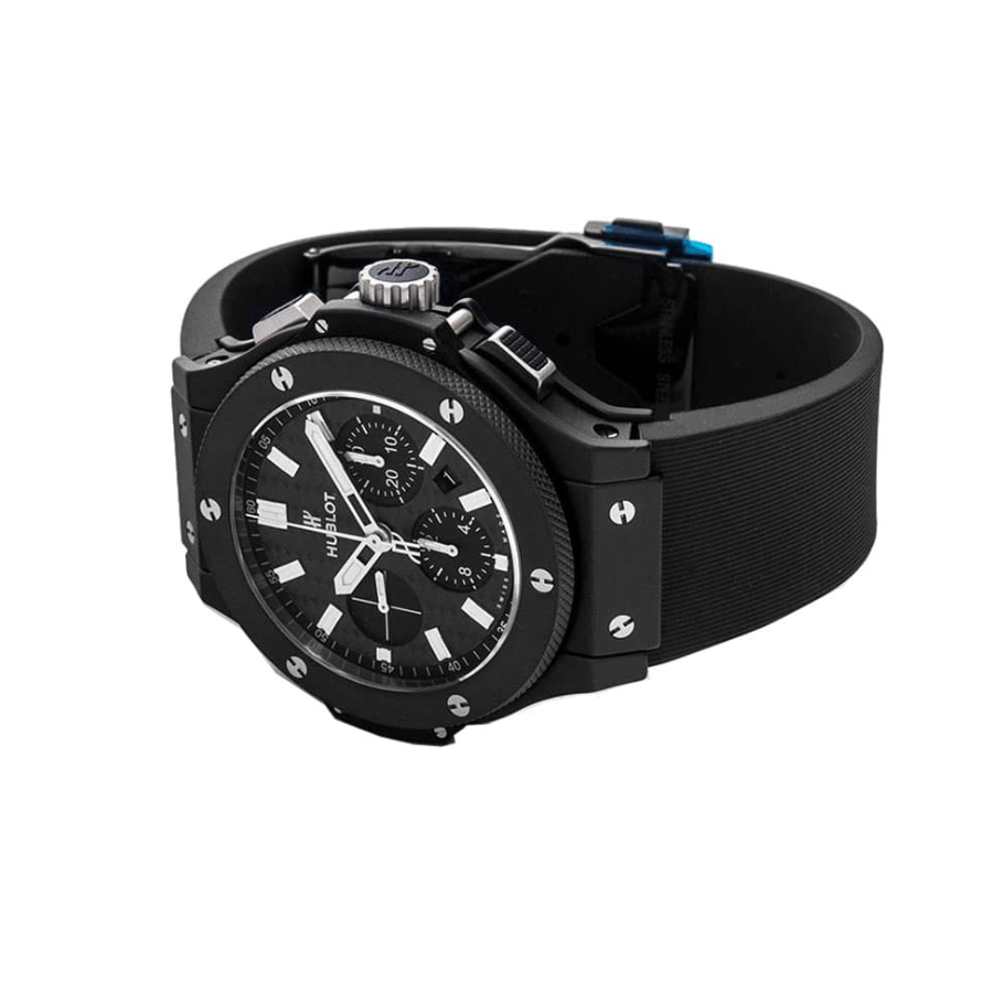 The Hublot Big Bang Black Magic 301.CI.1770.RX Replica is a luxury watch. It features a 904L stainless steel case and bezel. both in a matt black finish. The 44mm case houses an automatic HUB 4100 movement with a 60-hour power reserve and a precision of -3/+3 seconds per day within COSC certification limits. The black silicon rubber bracelet is adjustable to fit all sizes and is secured with a 904L stainless steel fold clasp.