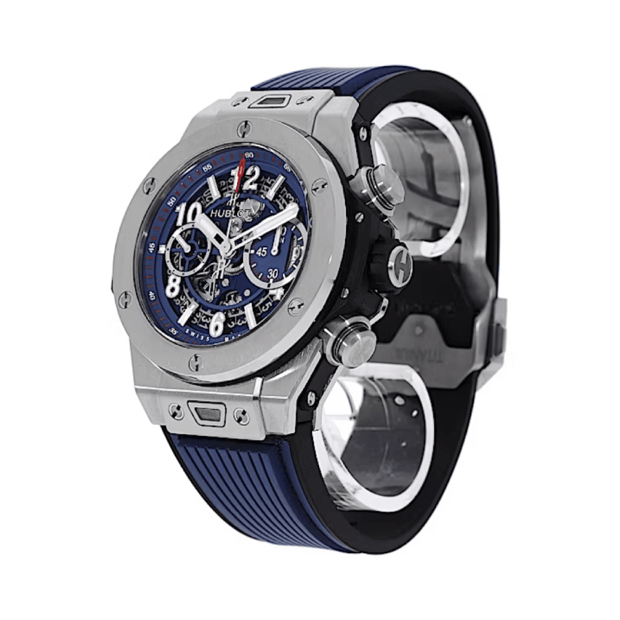 The Hublot Big Bang Unico Blue 411.NX.5179.RX Replica is a luxury watch. It features a 904L stainless steel case and bezel. both in a beautiful blue color. The case is 45.00 mm in size and is fitted with a sapphire crystal. The bracelet is made of rubber and is adjustable to fit all sizes. The dial is also blue and features mixed indices. 904L stainless steel hour markers. and stick hands.