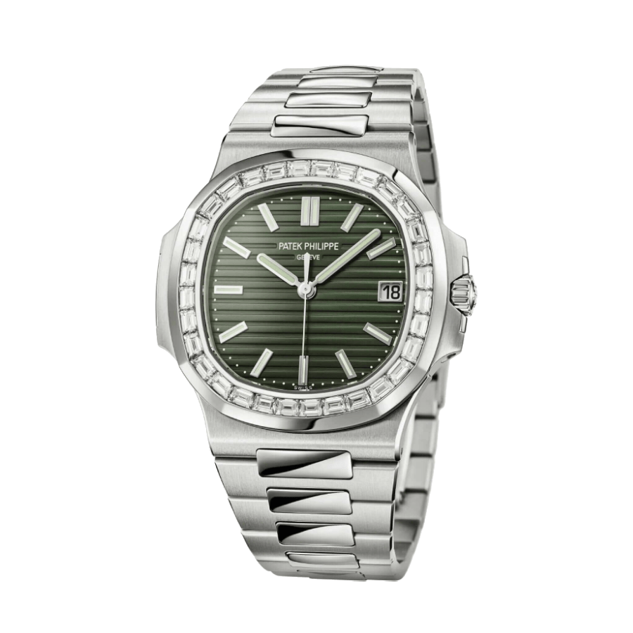 The Patek Philippe Diamond Bezel Replica is a high quality watch from the Nautilus family. It features a 904L stainless steel case with a black bezel and sapphire crystal. The movement is an automatic caliber 324 S C with a power reserve of 60 hours and precision of -3/+3 sec/day within COSC certification limits. The second hand has a sweep motion. The bracelet is made of 904L stainless steel with an adjustable link and a fold-over clasp. The dial is green with stick and dot indices and 904L stainless steel stick hands. The watch has a water resistance of 30m and is covered by a 2 year international warranty.