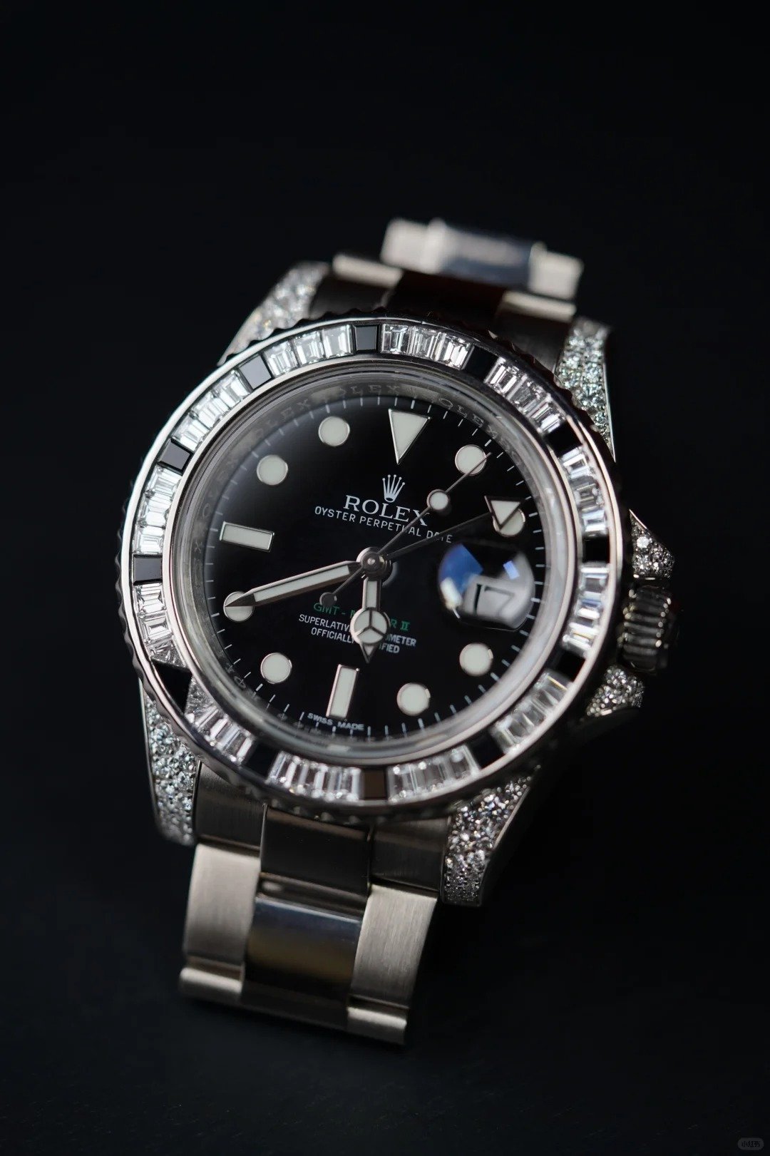 Rolex Submariner Swiss Replica watches are equipped with the new SuperLuminova Blue glow lume pigment that after sufficient activation by sunlight or artificial light will glow in the dark up to 9 hours with uniform luminosity throughout.