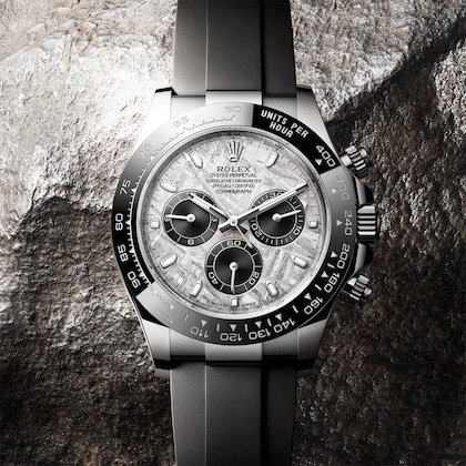 Meteorite comes from the heart of an asteroid or possibly even a planet that has exploded, propelling material across the Solar System until chance brings it into our planet???s orbit and gravity pulls it to Earth. During its journey, the centre of the meteorite is gradually transformed, producing highly unusual metallic patterns, resulting from the very slow cooling of molten asteroid cores. The designers at Rolex create from these configurations a unique treasure for some of the most prestigious models, including this Cosmograph Daytona.