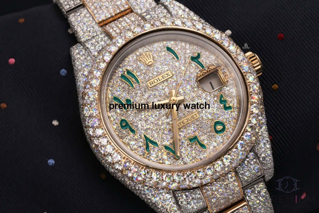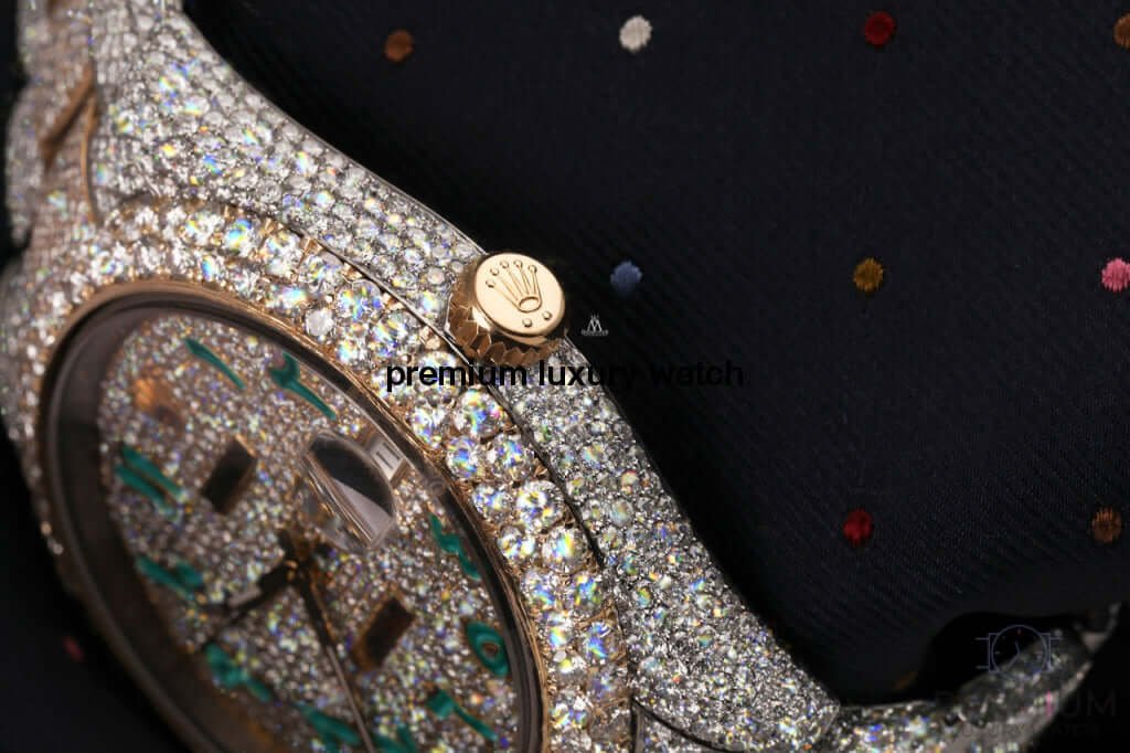 Be the first to review “Rolex Datejust 41MM Turquoise Arabic Script Dial Stainless Steel and Moissanite Iced Out Watch”