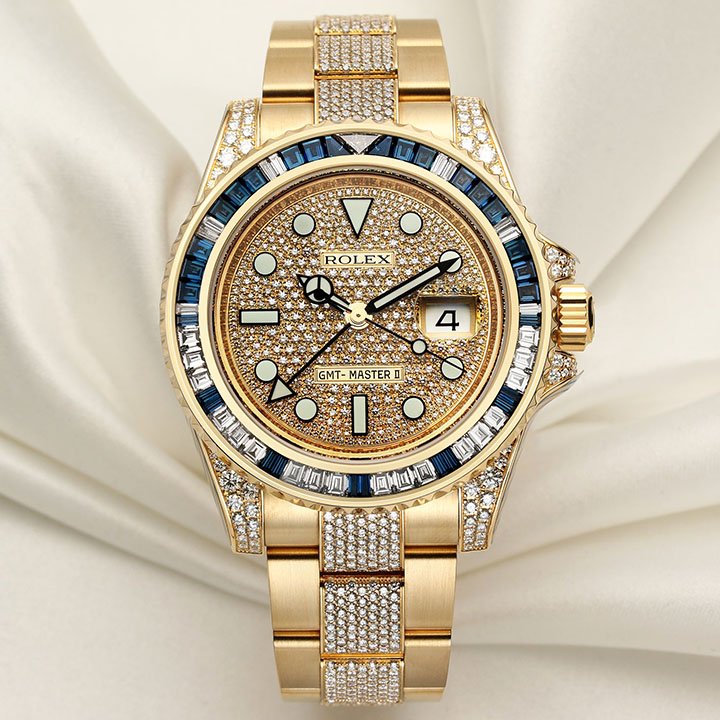 Rolex GMT-Master II 116758SA-78208 18k Yellow Gold Diamond & Blue Sapphire