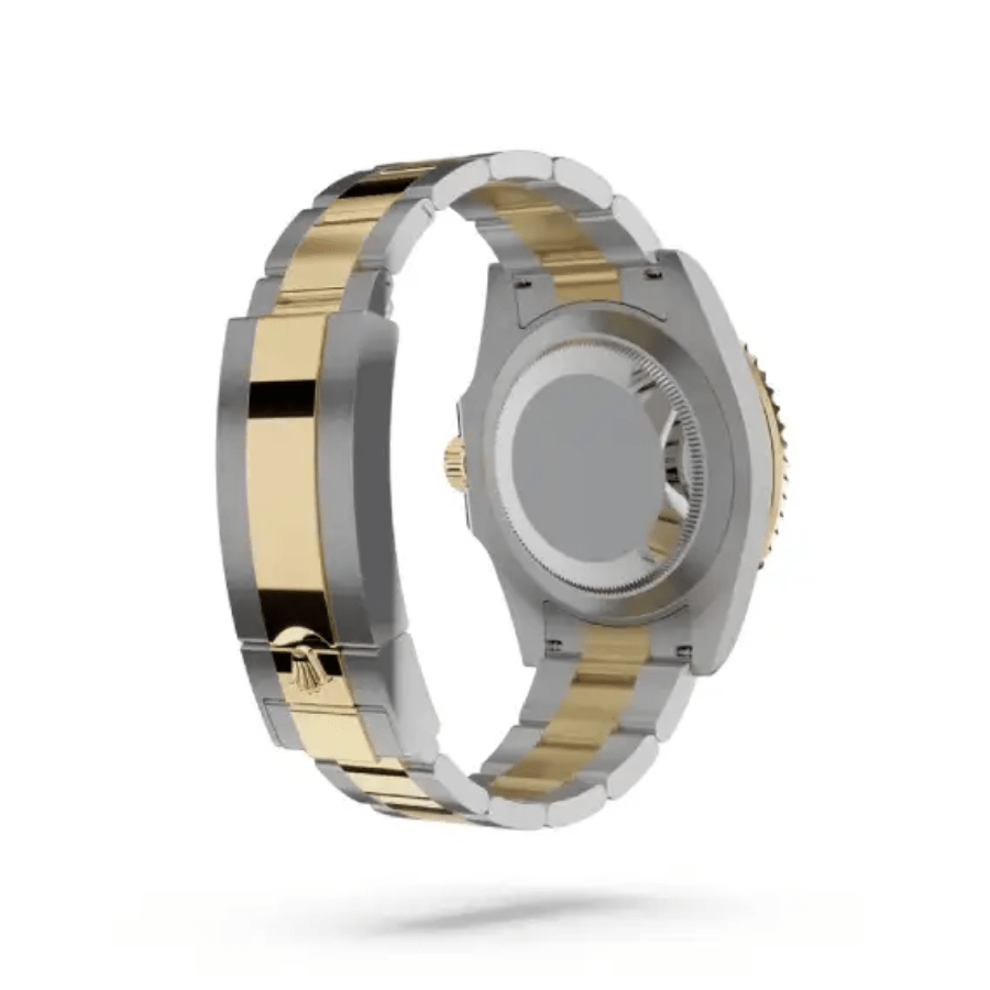 The two-tone bezel. a harmonious blend of yellow gold and caramel. further enriches its luxurious appeal. Meanwhile. the bracelet crafted from the same 904L stainless steel and coupled with a fold clasp in steel and yellow gold ensures not only adjustability but also a snug. secure fit on your wrist. This bracelet’s seamless integration with the case reflects Rolex’s commitment to both form and function.